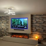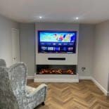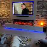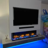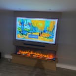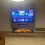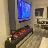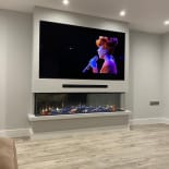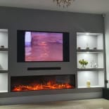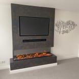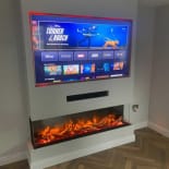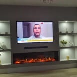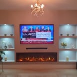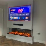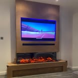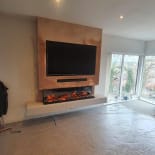 Experience the elegance of our modern media wall build featuring the Firez 1500 electric fire. This raised media wall includes LED lighting under the unit. The customer was really happy with the result and continues to share messages and pictures of their stunning media wall.
