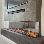 Our team loves this design with the stunning Firez 1800. This standard build includes a sleek added lip around the fire to create a captivating look. This design is one of our most popular and from the images it's easy to see why. The lip around the fire adds sophistication that can be used to elevate your living space.. Please contact us to learn more about this unique design.